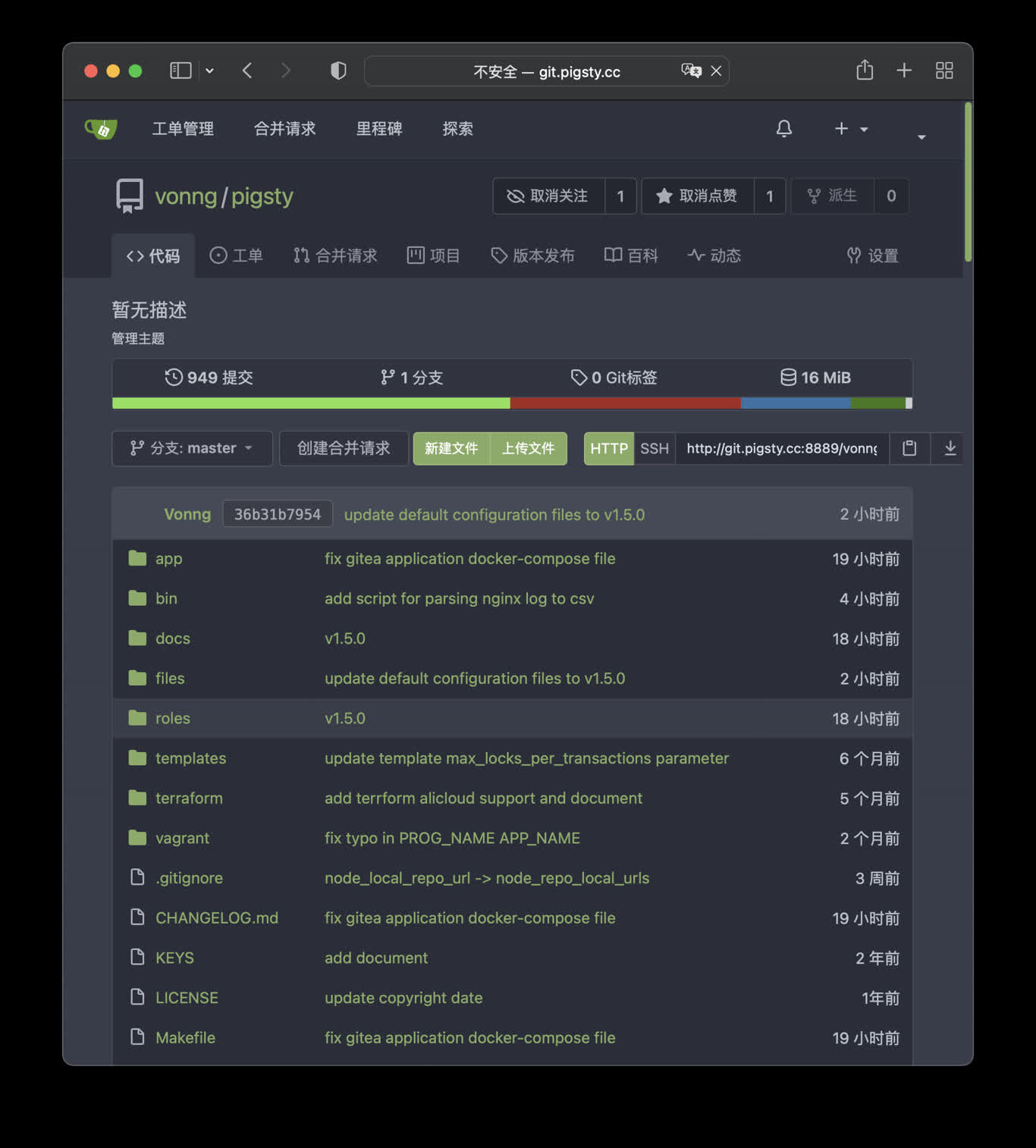 Pigsty 使用 main 主干分支进行开发,请始终使用带有版本号的 Release 。