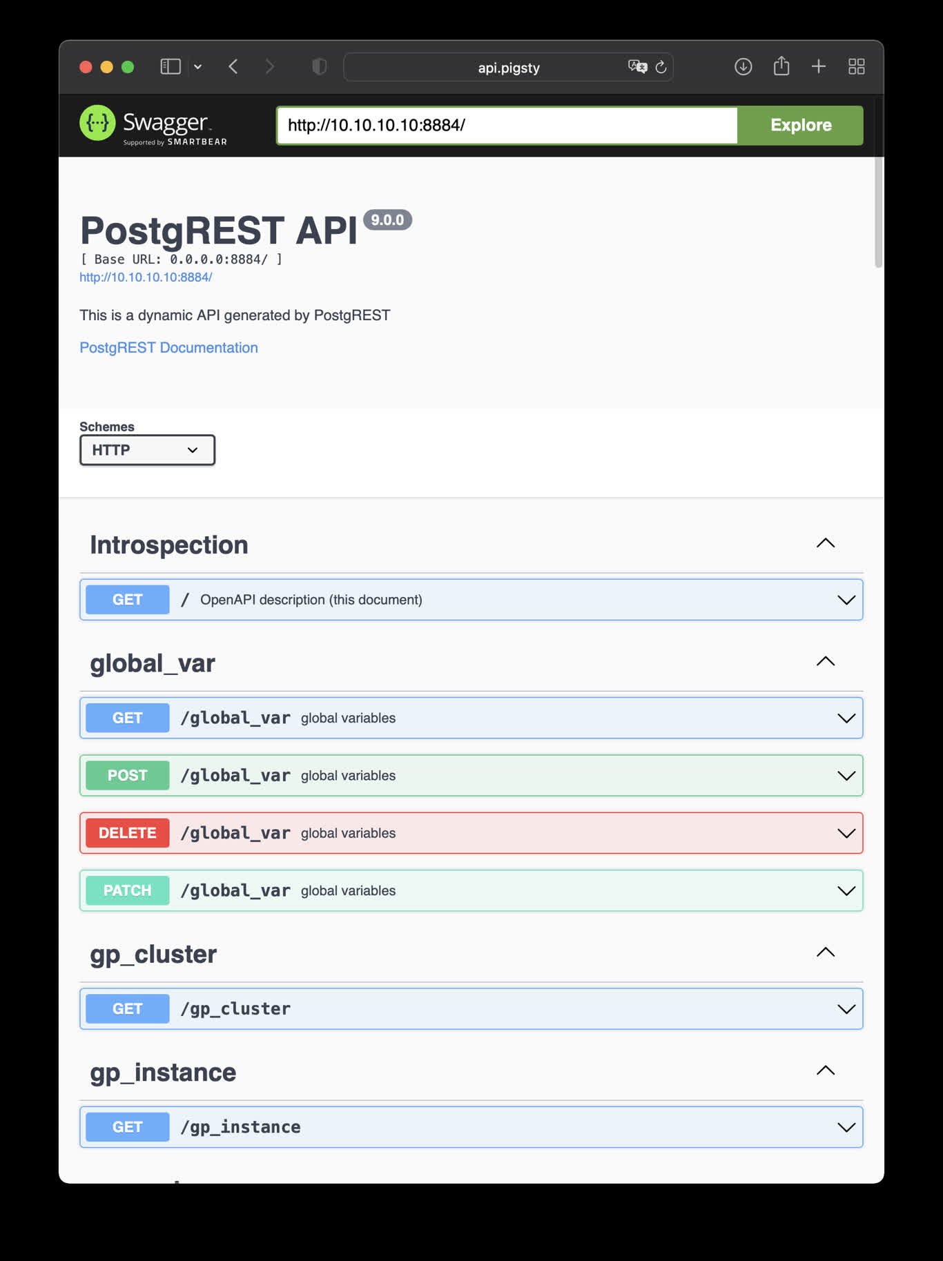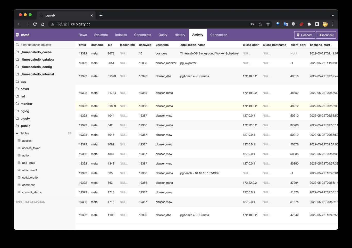 Pigsty 也提供了与 PostgreSQL 紧密联系的应用开发工具集:PGAdmin4、PGWeb、ByteBase、PostgREST、Kong、以及 EdgeDB、FerretDB、Supabase 这些使用 PostgreSQL 作为存储的"上层数据库"。